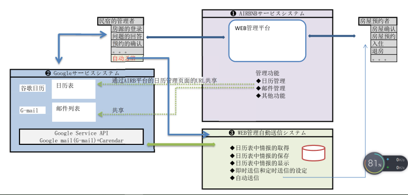 利用愛彼迎公司的網(wǎng)絡(luò)平臺(tái)出租民宿的房東的客戶服務(wù)都是基于愛彼迎的網(wǎng)上平臺(tái),針對(duì)客人的郵件的對(duì)應(yīng)主 要集中在愛彼迎的郵件管理好人日歷管理系統(tǒng)來完成的,本次開發(fā)的客戶郵件的自動(dòng)群發(fā)管理系統(tǒng)是基于Google郵件 和google日歷 (與愛彼迎日歷關(guān)聯(lián))提供的服務(wù),通過google賬戶登錄,獲取Google日歷信息,以便將取得的愛彼 迎的的客戶訂房信息(包括客戶基本信息和實(shí)時(shí)的訂房信息,入住信息和退房信息)進(jìn)行分類處理,并且針對(duì)不同 分類的客戶進(jìn)行定型的郵件內(nèi)容的處理,對(duì)客戶進(jìn)行定時(shí)的郵件群發(fā)的管理。